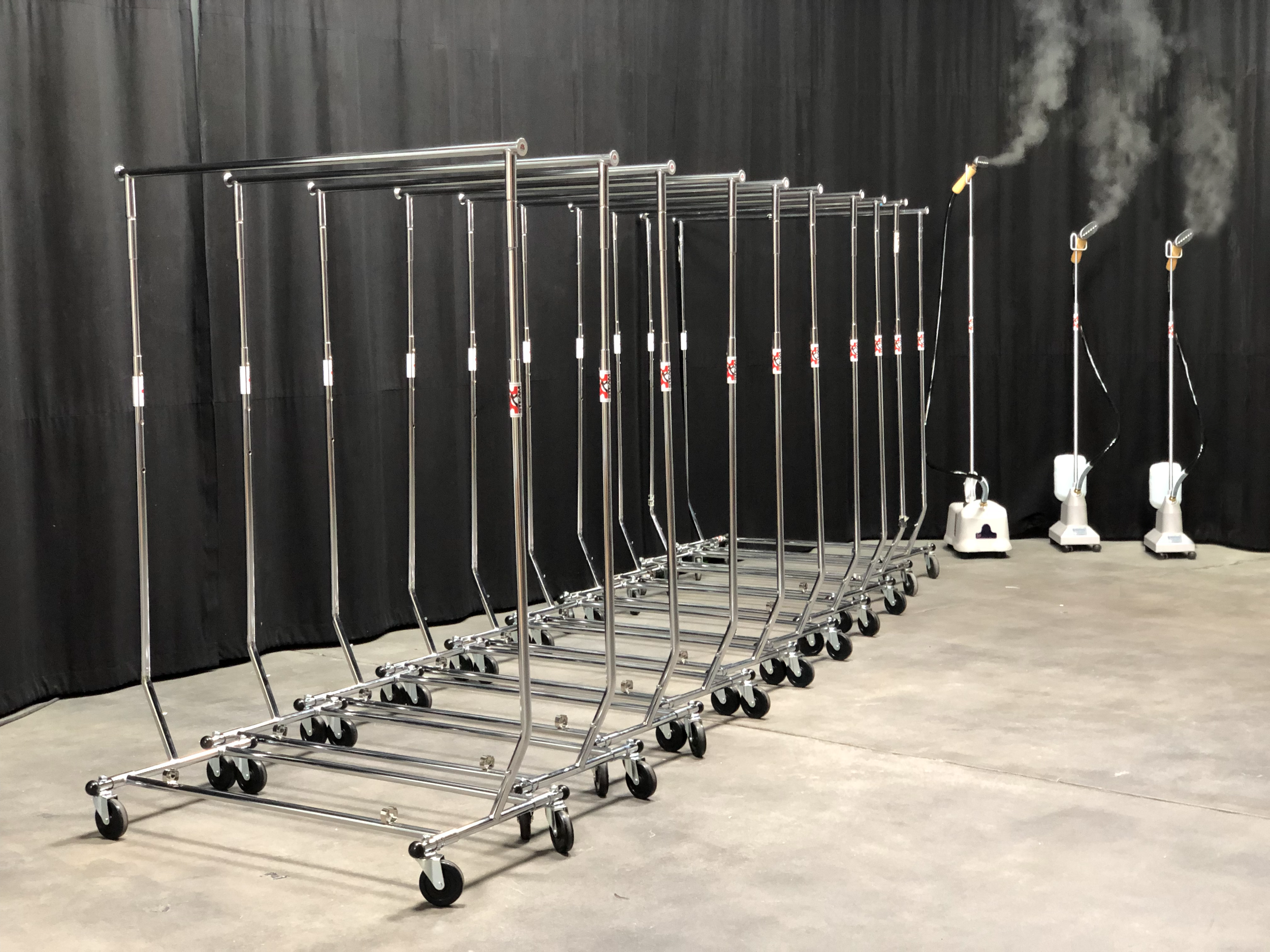 This space comes with everything that you’ll need for a fitting or rehearsal project. Including (3) Jiffy steamers, (17) Wardrobe Racks, (22) 6ft Folding Tables, (30) chairs, trash cans, dumpsters and a 12'x12' load in door. All of this is included in the rental price of $750/day. A site rep will be available all day to help with any production requests.